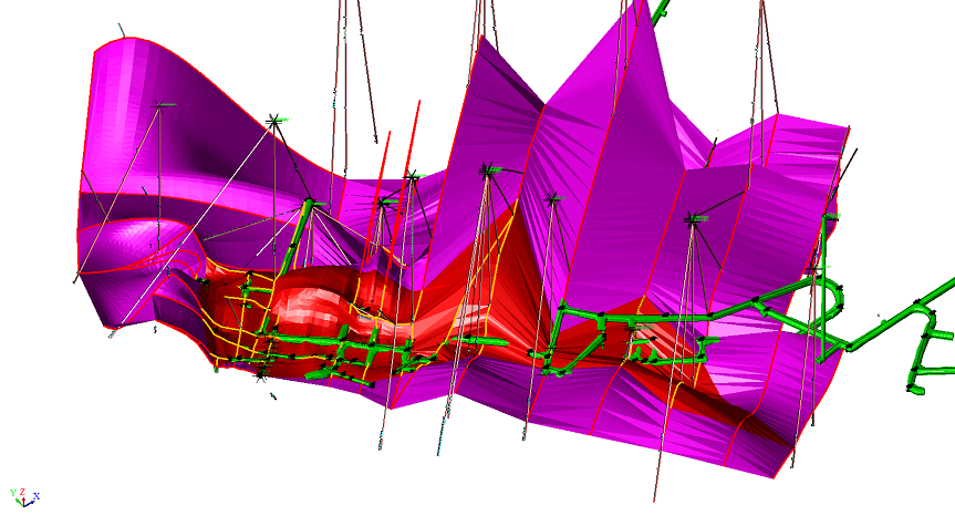 依據地質編錄三維化結果對剖面邊界開展二次圈定工作,實現三維化邊界控制,較傳統方法更精準,真實反映礦體空間位置、形態。